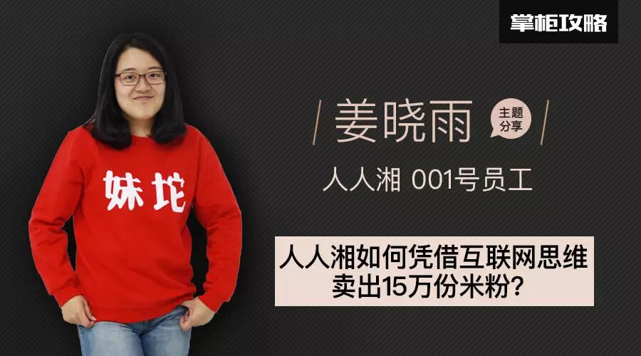 同一时间,掌柜攻略邀请人人湘001号员工姜晓雨在掌柜公社以“人人湘如何评介互联网思维卖出15万份米粉?”为题进行了一次对人人湘模式的深度解读,让我们看看她怎么说: