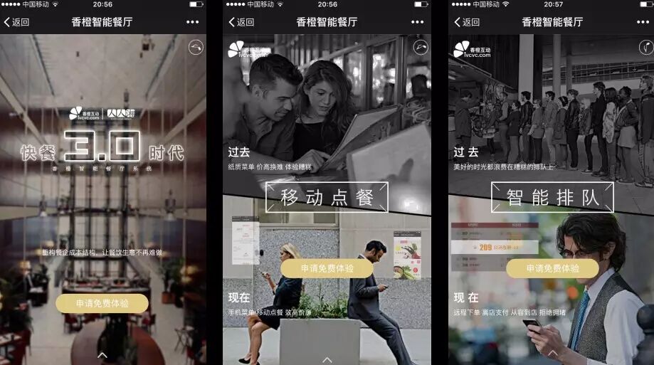 快餐3.0时代代表:人人湘、黄太吉等。快餐3.0时代是一场比较大的变革,还是拿人人湘来举例,虽然餐品依然是中式,但我们在点餐和消费环节做了改变,大家不需要排队,在座位上,办公室中就可以使用手机直接点餐,手机会收到取餐号码,到店后餐厅也会语音提示去取餐,这是快餐3.0时代最简易的模式。